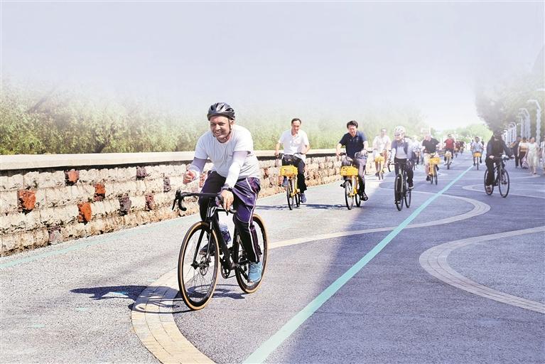 外国游客组成骑行队伍从西湾红树林公园红树林广场出发,骑行游玩深圳。深圳报业集团记者 宋璐 摄